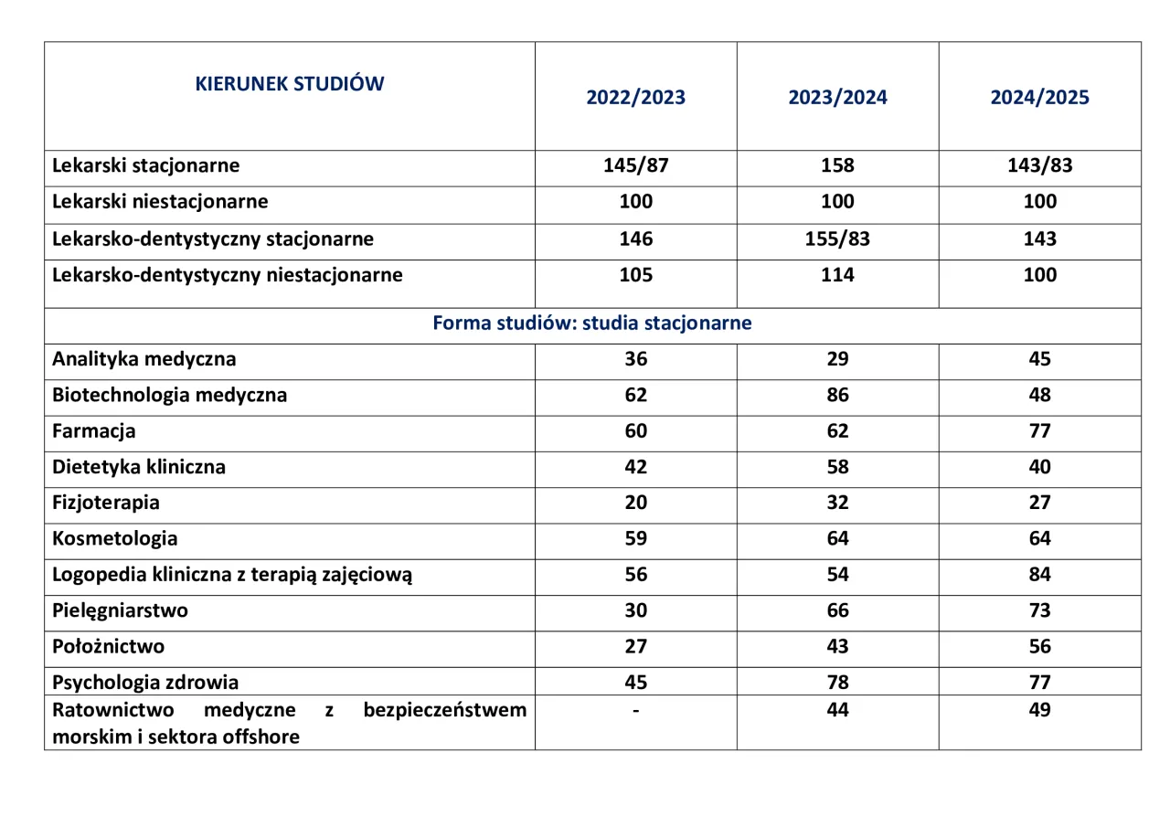 Progi punktowe dla kierunku lekarskiego i lekarsko-dentystycznego